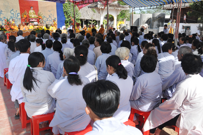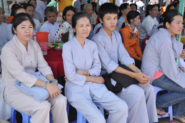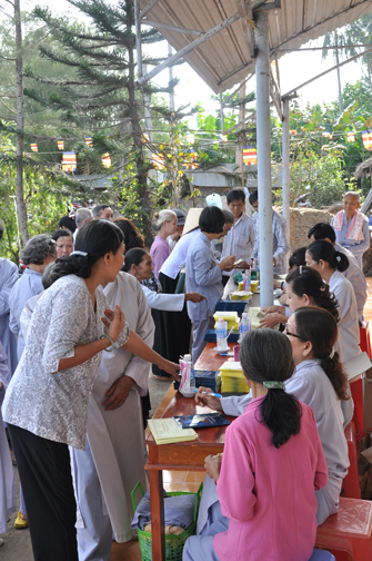 Trong buổi lễ, chùa Hoằng Pháp cũng gởi tặng quý Phật tử hơn 500 VCD Trọn Kiếp Con Người. Toàn thể đại chúng vô cùng hoan hỷ.