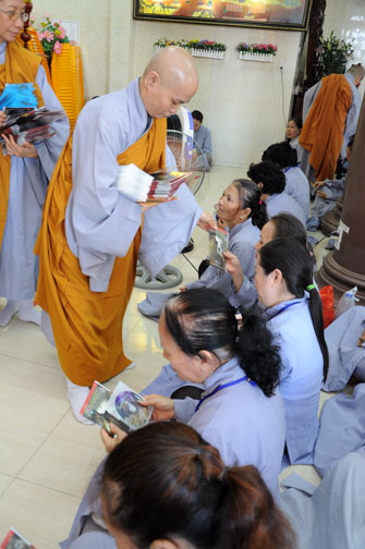 Kết thúc thời Pháp, Thượng tọa gửi tặng mỗi thiện nam tín nữ một phần quà Pháp bảo VCD Viễn Hành và Luân Hồi Thật Đáng Sợ.