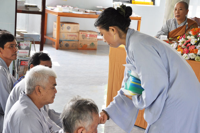 Kết thúc bài pháp thoại, Thượng tọa đã gởi tặng món quà pháp bảo về đĩa giảng Ánh Sáng Phật Pháp kỳ 37 đến toàn thể Phật tử trong ngày tu Bát quan trai.