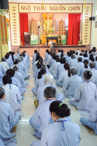 Theo Đại Đức trụ trì cho biết, mỗi tháng chùa có tổ chức tu Bát Quan Trai giới và hai tháng tổ chức khóa tu niệm Phật 2 ngày. Đây là khóa tu niệm Phật lần thứ 51. Thượng tọa Thích Chân Tính đã tán thán tinh thần hoằng pháp lợi sinh của Đại Đức trụ trì và tán thán tinh thần tu học không mệt mỏi của quý Phật tử. Trong buổi pháp thoại Thượng tọa nói về 5 pháp căn bản của người Phật tử tại gia đó là: Tín, giới, văn, thí, tuệ.