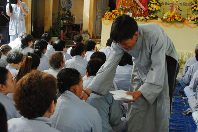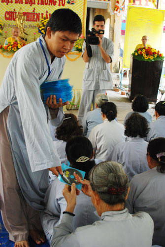 Kết thúc buổi pháp thoại, thượng tọa gởi tặng quý Phật tử đĩa VCD “Ánh Sáng Phật Pháp kỳ 36”.