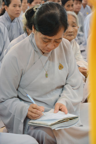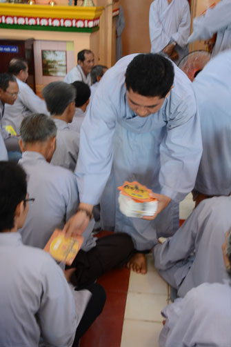 Kết thúc thời pháp thoại Thượng tọa gởi tặng đến đại chúng VCD “Vững Tiến”.