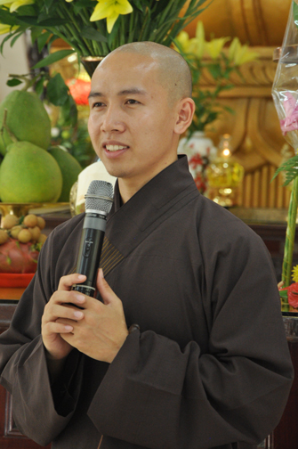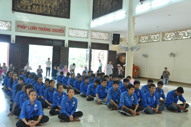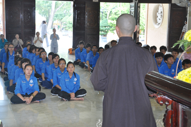 Thay mặt chư Tăng chùa Hoằng Pháp ĐĐ. Thích Tâm Từ đã có lời động viên và thăm hỏi đến tất cả các bạn, đồng thời Thầy cũng nhắn nhủ đến tất cả các bạn nên tìm hiểu, nghiên cứu và đi sâu vào giáo lý của đức Phật vì đó là nền tảng giúp các bạn có được cuộc sống an lành, để xây dựng và bảo vệ các vấn đề về giá trị sống của con người ngày càng tốt đẹp hơn. Nhân đó chùa cũng đã gửi tặng đoàn 20 triệu đồng làm lộ phí cho những ngày về và gửi đến mỗi bạn 1 phần quà Pháp bảo gồm: 1 DVD Diệu âm Hoằng Pháp 3, 1 DVD Du Hóa, 1 VCD Phật Pháp Nhiệm Mầu kỳ 33 và 1 quyển sách Hạt Từ Tâm.