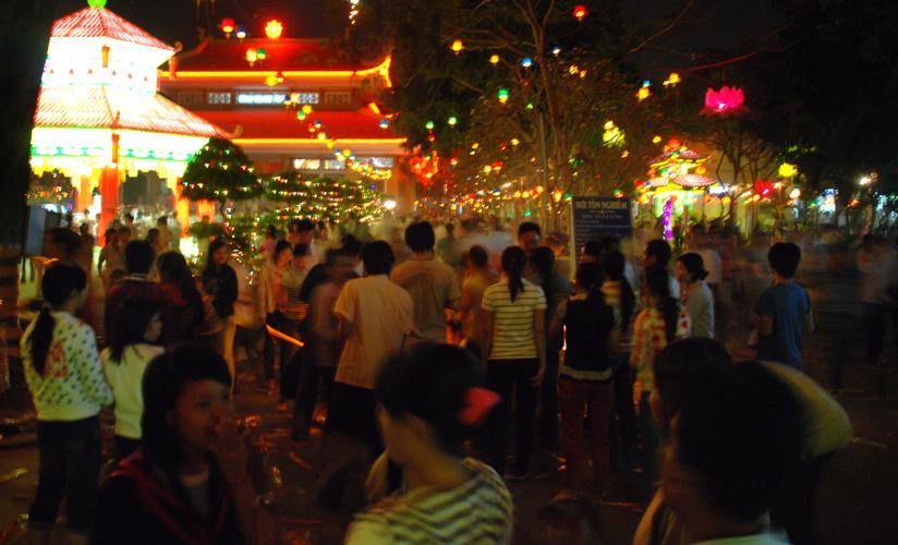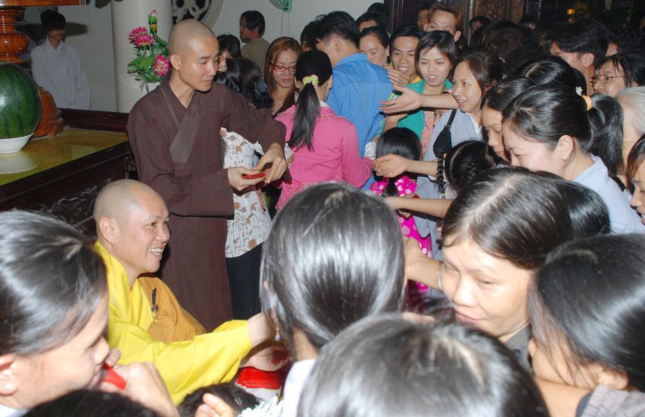 Sáng ngày mồng một Tết, tại Tổ Đường mới 4h00 sáng các Phật tử ở thành phố Cần Thơ xa xôi đã về chùa Chúc tết chư tăng. Sau đó, Phật tử khắp nơi cũng về chùa tham quan lễ bái và chúc tết trong niềm hoan hỷ vô biên. Tối cùng ngày, khói hương nghi ngút lan tỏa cả một vùng trời khi mà từng dòng người đổ về tham dự đêm hội hoa đăng và lễ Phật trong sự chiếu soi của những ánh đèn lung linh sắc màu, đan xen giữa những tiếng cười hạnh phúc.