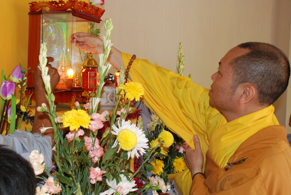 Sau thời pháp, Ni trưởng Thích Nữ Diệu Ý cùng đại chúng cung thỉnh Thượng tọa từ bi chú nguyện và bái thỉnh xá-lợi tôn trí bảo tháp. Thượng tọa gởi tặng khoảng 400 VCD Ai Cũng Là Phật cho đạo tràng.