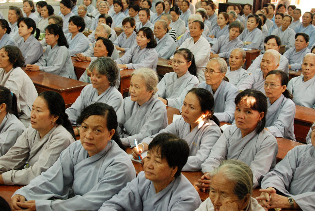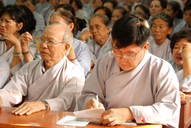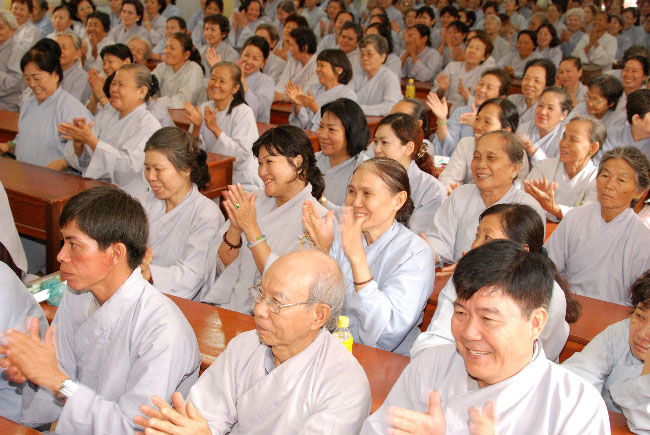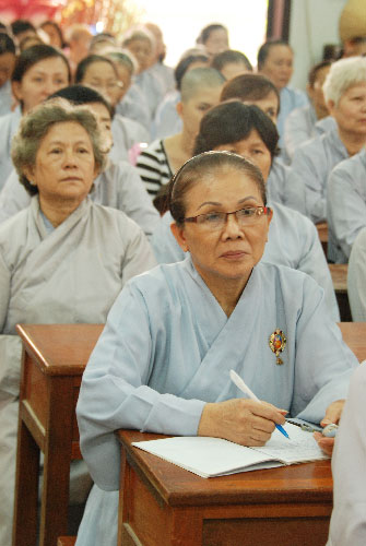 Vào lúc 8 giờ tại giảng đường Chơn Thanh, Thượng tọa Thích Chân Tính đã có thời pháp thoại xoay quanh chủ đề “Vô ngã vị tha”.