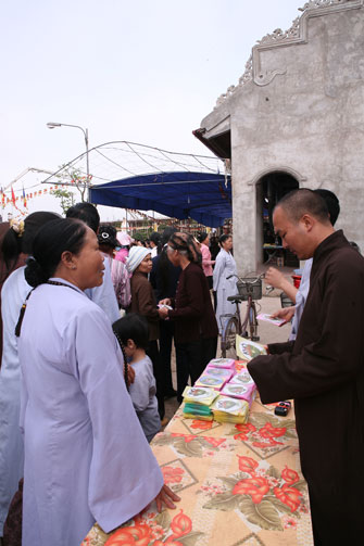 Cũng trong buổi lễ hôm nay, Thượng tọa đã gửi tặng 1000 phần quà pháp bảo cho Phật tử gồm 2 VCD “Phật pháp nhiệm màu kỳ 26” và “Khó vẫn làm được” do chùa Hoằng Pháp thực hiện.