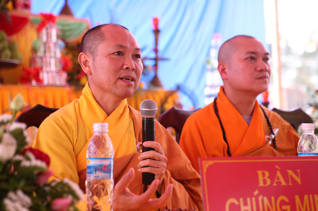 Trước hết Thượng tọa tán thán công đức vô lượng của Đại đức trụ trì cùng sự đồng tâm hộ pháp của quý thiện nam tín nữ đã chung vai kiến thiết lại chốn già lam, lấy đó làm nơi tu học và phát triển hoằng pháp cho nhân dân Phật tử. Thượng tọa đặc biệt nhấn mạnh tầm quan trọng của ngôi chùa đối với hàng Tăng Ni, Phật tử bởi chùa là nơi Tăng Ni tu học, trưởng dưỡng đạo tâm và hoằng truyền chánh pháp của Như Lai, chùa cũng là điểm tựa vững chắc cho hàng Phật tử có nơi tu tập và thực hành giáo lý của Đức Phật.