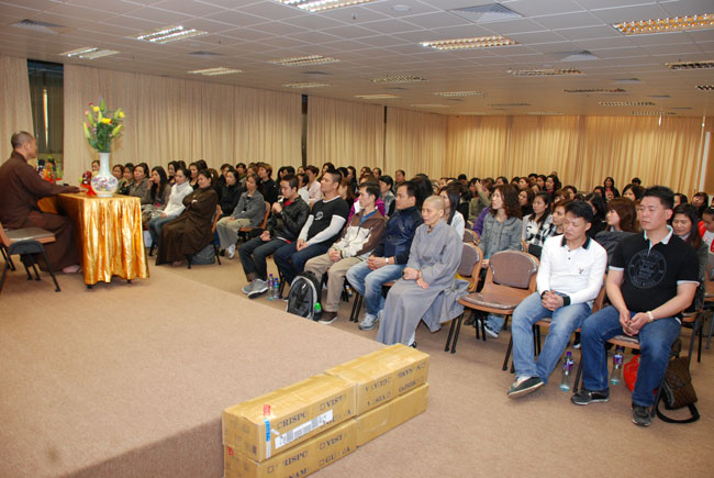 Kết thúc thời pháp trong niềm hoan hỷ của mọi người, Thượng tọa đã gởi tặng mỗi người một phần quà pháp bảo gồm đĩa DVD “Hoa đăng tỏa sáng đêm Di Đà”, “Dư Âm”, “Đón Xuân Tân Mão”, “Dân Hòa Nước Mạnh” để động viên quý Phật tử tinh tấn tu tập.