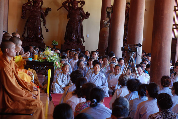 Được sự hoan hỷ của Thượng tọa trụ trì chùa Trúc Lâm, buổi thuyết giảng đã diễn ra trong không khí trang nghiêm, dưới sự bảo trợ của Phật tử Diệu Ngộ và công ty du lịch Vinpearl. Trong không khí chan hòa giữa nắng và gió biển, Thượng tọa Thích Chân Tính đã chỉ dạy, sách tấn các Phật tử tu học tinh chuyên hơn. Với tấm lòng rộng mở, mỗi người nên nhìn thấy được lỗi của mình để sửa đổi. Tuy nhiên, có những lỗi có thể nhìn thấy được, nhưng cũng có những lỗi không thấy được, cần phải nhờ thầy bạn, cha mẹ hoặc thiện trí thức chỉ dùm. Phải xem những người chỉ lỗi cho mình là người tốt, không nên tự ái mà oán giận. Là Phật tử, nên phát nguyện mong được người chỉ lỗi và biết ơn người chỉ lỗi. Được như vậy, chắc chắn mỗi người sẽ ngày một tốt đẹp hoàn thiện, đúng nghĩa là người Phật tử tại gia.