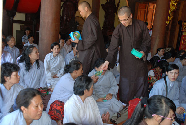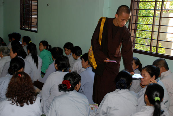 Sau buổi thuyết giảng, Thượng tọa đã hoan hỷ tặng hơn 400 VCD Ai Cũng Là Phật cho Phật tử thính pháp và khách thập phương.