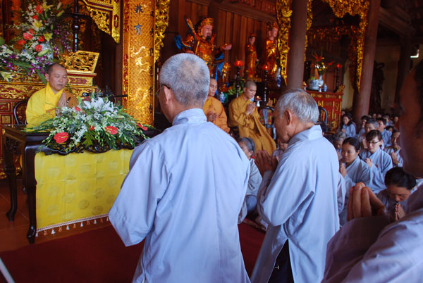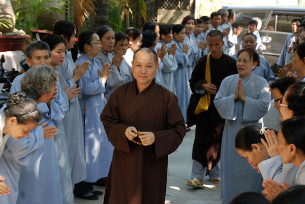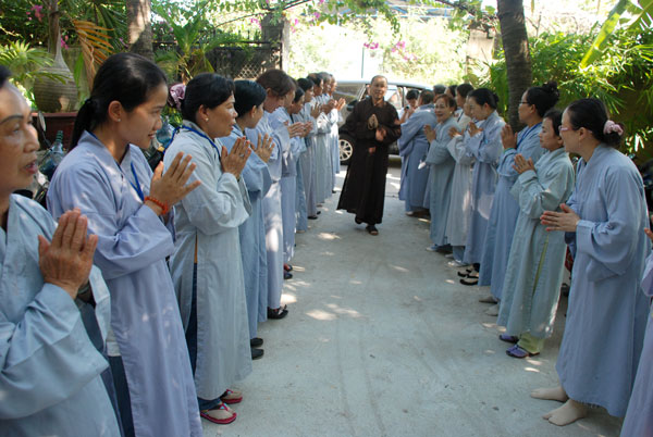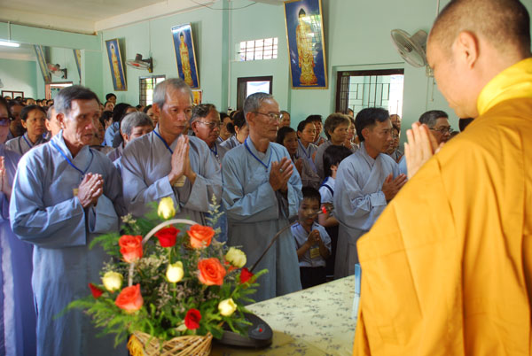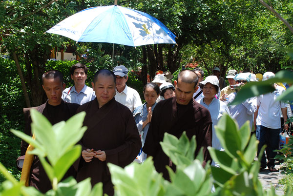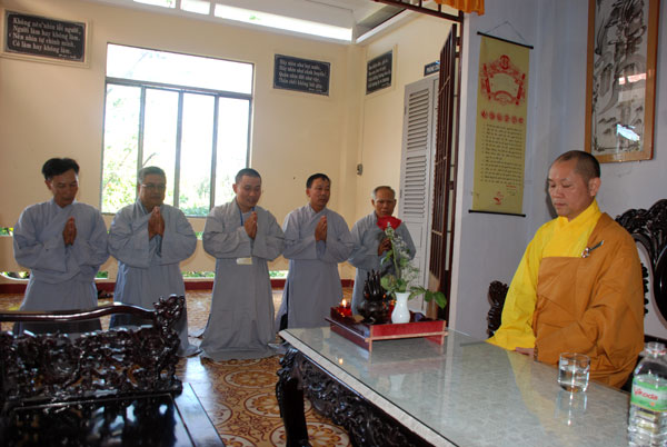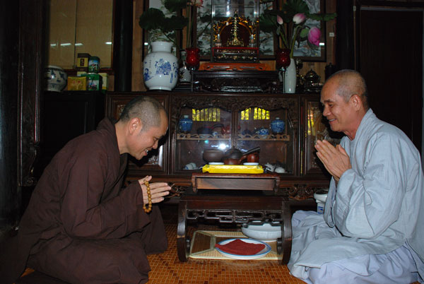 Sau khi dùng cơm trưa, TT. Thích Chân Tính đã đến thăm và đảnh lễ HT. Thích Chí Tín - Trụ trì chùa Long Sơn và thăm Thượng tọa trụ trì chùa Trúc Lâm, trong không khí thấm tình đạo vị.
