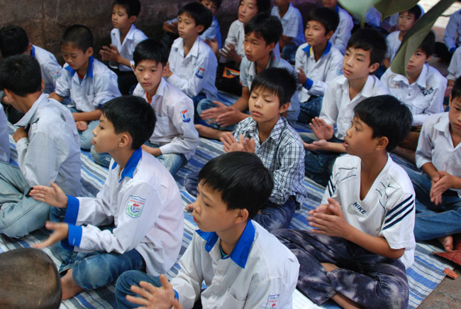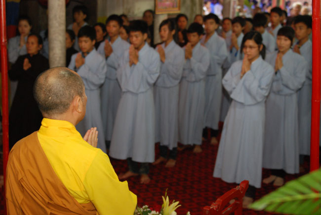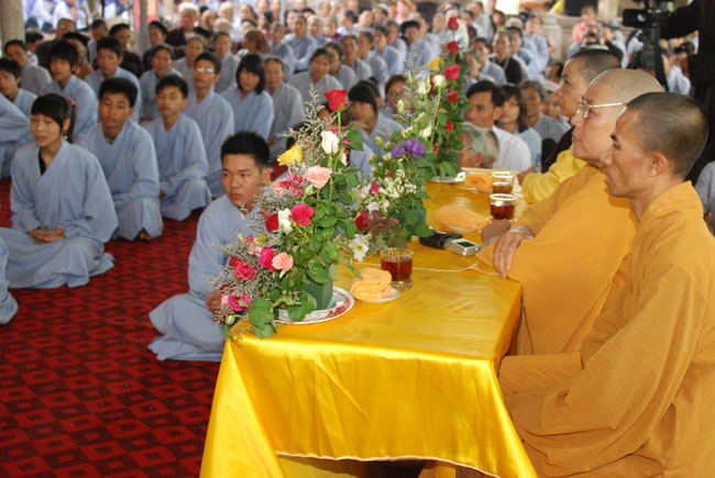 Ngoài ra, vì trong buổi thính pháp hôm nay có rất nhiều các em học sinh nên Thượng tọa cũng khuyên các em phải biết tri ân và báo ân tất cả mọi người, cụ thể là bốn ân lớn mà đức Phật đã dạy: “Ơn cha mẹ, Ơn thầy tổ, Ơn tổ quốc, Ơn chúng sinh”. Nhất là phải tin sâu nhân quả để ý thức được rằng mọi hành động hiện tại của mình, mình phải lãnh lấy hậu quả trong tương lai. Thượng tọa cũng lấy một câu trong bài học ngàn vàng khuyên các em phải cố gắng học thuộc “Phàm làm việc gì trước phải xét đến hậu quả của nó”.