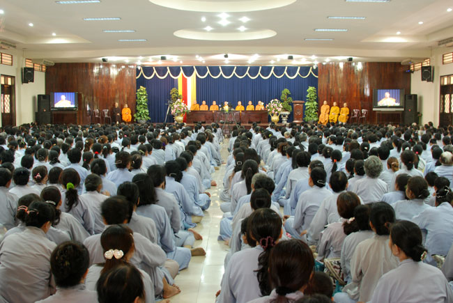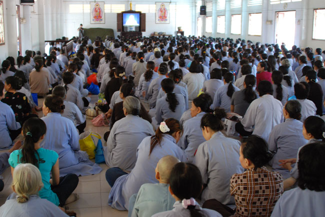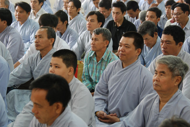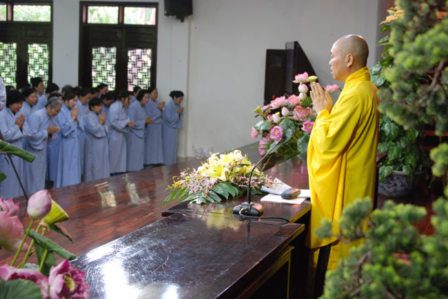 Thời pháp thoại đầu ngày lần này là những chia sẻ của Thượng tọa Trụ trì Thích Chân Tính. Thượng tọa đã nhắc nhở quý Phật tử về phương pháp tu tập. Dù tu theo pháp môn nào cũng vẫn phải dựa trên nền tảng giới định tuệ, qua đó giữ ba nghiệp thân, khẩu, ý thanh tịnh. Như trong ngày tu hôm nay, việc giữ giới chính là giữ chánh niệm trong việc chọn chỗ nghe giảng, chỗ ngồi ăn, khi đi đứng nằm ngồi, biết giữ gìn, nhắc nhở nhau ổn định trật tự... Và để có thể trở thành những Phật tử gương mẫu góp phần xây dựng đạo tràng trang nghiêm, thanh tịnh, mỗi người phải tỉnh giác, chánh niệm trong từng oai nghi, tế hạnh để trở thành những hoằng pháp viên tốt nhất trong việc phổ biến chánh pháp. Kết thúc thời pháp, Thượng tọa gửi lời chúc an lạc, tinh tấn tu tập đến quý Phật tử, đồng thời phát động mọi người phát tâm đóng góp tịnh tài chia sẻ khó khăn với những bạn Nhật đang trong thời kỳ ổn định, thiết lập lại sau thảm họa động đất, sóng thần vừa qua.