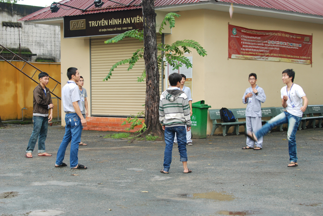 Sau khi dùng điểm tâm sáng là một phần bánh mỳ do nhà chùa chuẩn bị sẵn, các bạn trật tự xếp hàng lên giảng đường theo thứ tự.