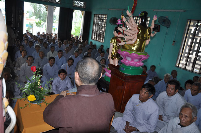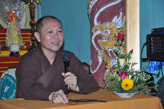 Thượng tọa đã chia sẻ những nỗi đau cũng như những khó khăn mà những người dân miền Trung đang phải gánh chịu, đồng thời khuyến tấn Phật tử nên siêng năng hành trì theo lời Phật dạy để có được đời sống an lạc trong hiện tại và mai sau. Cuối buổi pháp thoại TT đã tặng cho quý Phật tử phần quà pháp bảo là đĩa VCD “Biết Lỗi Nên Sửa” do TT thuyết giảng.
