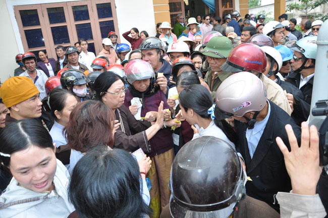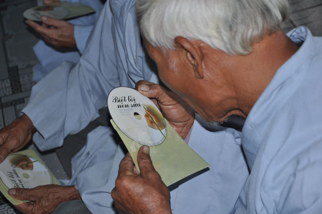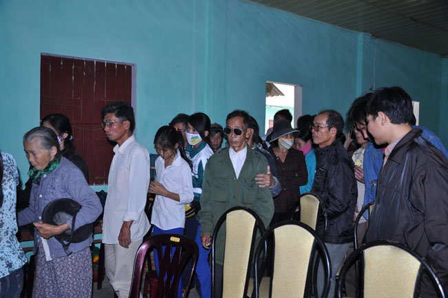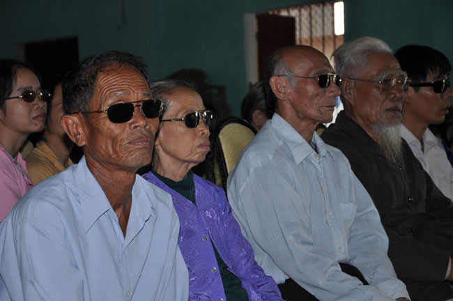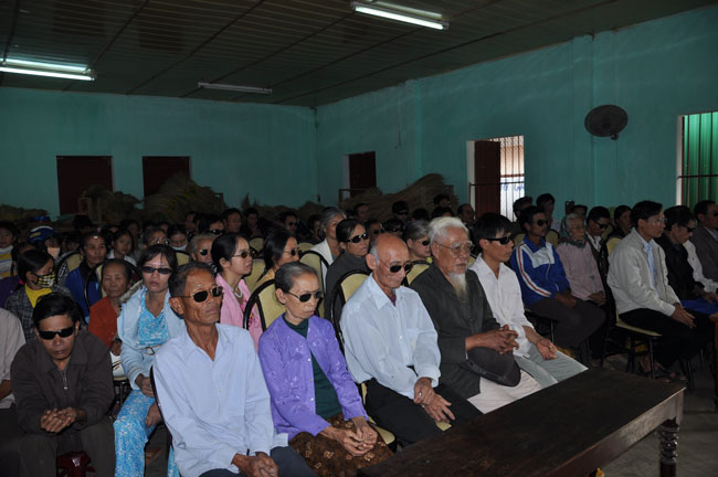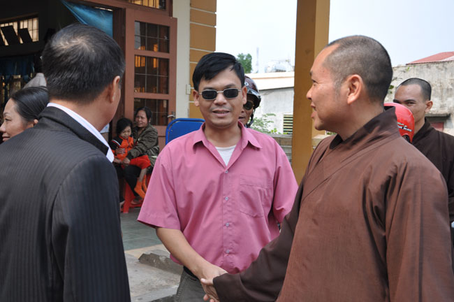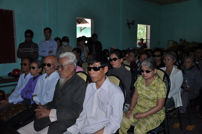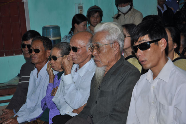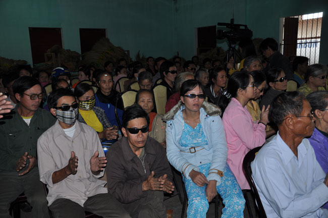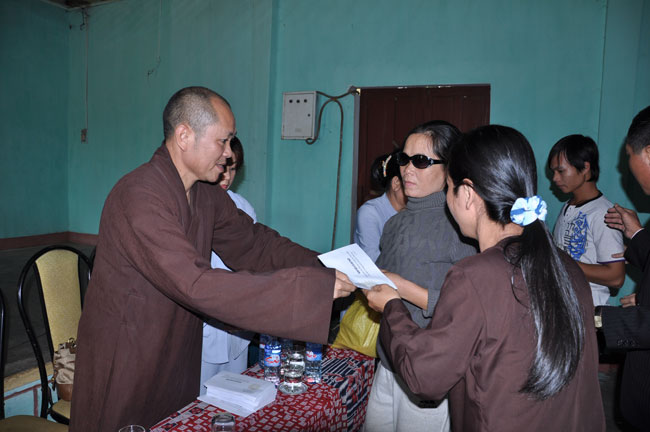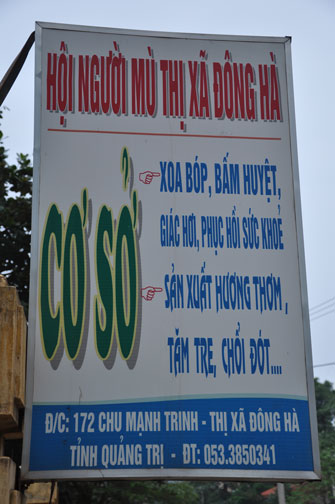 Hội Người Mù Thị Xã Đông Hà tọa lạc tại 172 Chu Mạnh Trinh, TX. Đông Hà, từ lâu đã là nơi nương tựa của những người khiếm thị tại thị xã. Chủ tịch hội, người tiếp đón đoàn chúng tôi cũng là một người khiếm thị, thế nhưng cách nói chuyện và mọi công việc ở trong hội đều được anh sắp xếp rất chu đáo. Trợ lý của anh là một người rất trẻ nhưng cũng là một người khiếm thị, cô kể lại rằng: “ cô không nhìn thấy gì từ khi cô học hết phổ thông trung học…” từ đó cô vào giúp đỡ công việc tại hội người mù này. Hội đã tạo điều kiện cho những người khiếm thị nơi đây có công ăn việc làm bằng những nghề như làm hương, làm chổi, tăm tre và bấm huyệt, xoa bóp… Thế nhưng cuộc sống của họ vẫn gặp rất nhiều khó khăn, nhất là sau mùa mưa lũ vừa qua. Tuy là không nằm trong chương trình của lần cứu trợ này nhưng đoàn cũng đã dừng lại nơi đây thăm hỏi động viên và tặng 180 phần quà mỗi phần trị giá 300 ngàn để giúp đỡ những người khiếm thị nơi đây.