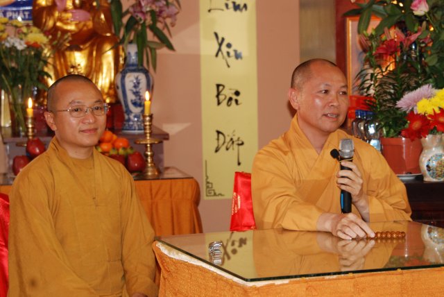 Đến tối, lúc 20h quý Thầy đã có buổi nói chuyện thăm hỏi quý Phật tử và bà con tại Niệm Phật Đường Vĩnh Nghiêm. Là người Phật tử xa quê nên mỗi lần được diện kiến, tiếp xúc ai cũng có nhiều điều muốn chia sẻ cũng như mong muốn quý Thầy hướng dẫn đường lối tu tập, giải đáp những thắc mắc mà trong quá trình tu tập còn vướng phải. Bằng kinh nghiệm và tình thương quý Thượng tọa đã giải đáp cũng như hóa giải những thắc mắc mà mọi người nêu ra. Qua đó động viên mỗi người phải là một hoằng pháp viên, luôn cố gắng động viên các thành viên trong gia đình và người thân phát tâm quy y Tam Bảo, chọn cho mình một hướng đi tốt theo lời dạy của đức Phật.