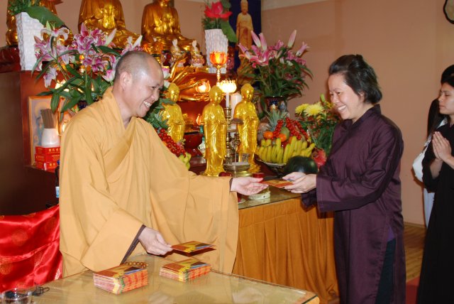 Kết thúc buổi gặp gỡ TT. Thích Chân Tính đã gửi tặng VCD “Dư Âm” đến các Phật tử.