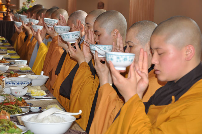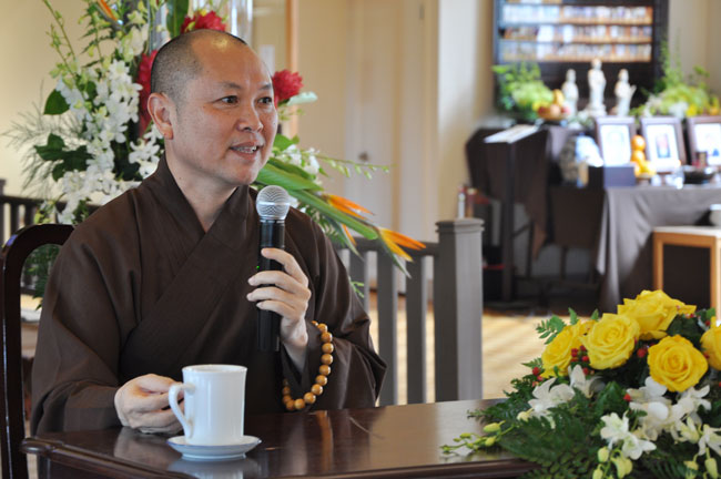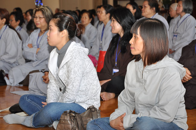 Sau giờ thọ trai, đại chúng tiếp tục thời khoá tu tập và được lắng nghe HT. Thích Bổn Đạt và TT. Thích Viên Giác chia sẻ Phật pháp. Trước khi hoàn mãn, TT. Thích Chân Tính đã có đôi lời động viên và đúc kết quá trình tu tập trong hai ngày, thông qua câu chuyện ví dụ “Ông trưởng giả có bốn bà vợ”. Với hình ảnh người vợ thứ nhất chỉ cho thân mình; người vợ thứ hai chỉ cho tiền bạc, của cải vật chất; người vợ thứ ba chỉ cho cha mẹ, anh em, chồng vợ, thân bằng quyến thuộc; người vợ thứ tư chỉ cho nghiệp của mỗi người. Thượng toạ khuyên đại chúng nên chăm chú vào bà vợ thứ tư. Chính bà vợ thứ tư sẽ theo mình trong tương lai.