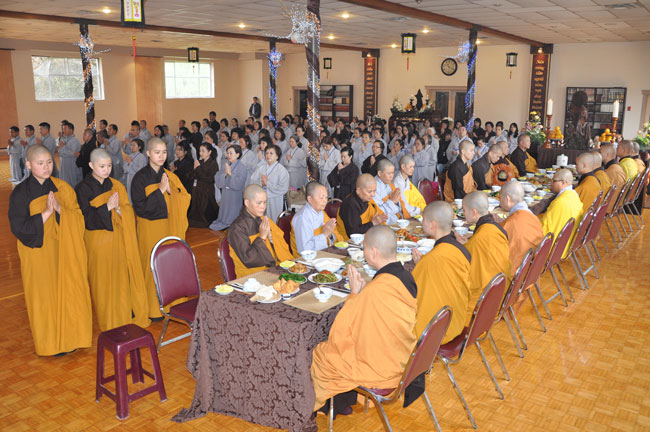 Theo thời khoá, buổi sáng quý Phật tử cùng nhau công phu kinh hành niệm Phật dưới sự hướng dẫn của ĐĐ. Thích Tâm Minh. Nhằm thể hiện trách nhiệm và bổn phận của người Phật tử tại gia theo phương châm “Phật pháp trường tồn do Tăng Già hoằng hoá, Thiền môn hưng thạnh bởi Đàn Việt phát tâm” trưa cùng ngày BTC cùng toàn thể Phật tử của đạo tràng đã tác pháp cung thỉnh chư Tôn Thiền đức Tăng Ni quang lâm chứng minh lễ cúng dường Trai Tăng. Đây là việc làm hết sức ý nghĩa với mục đích gieo duyên với Tam Bảo nhằm vun trồng phước báo cho tự thân và gia đình trong hiện đời cũng như những đời sau.