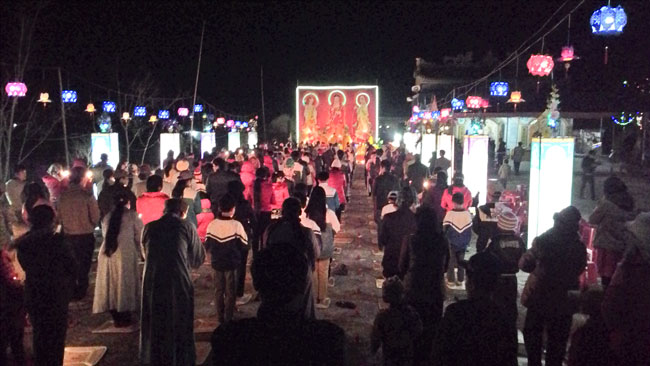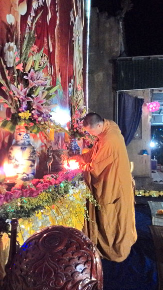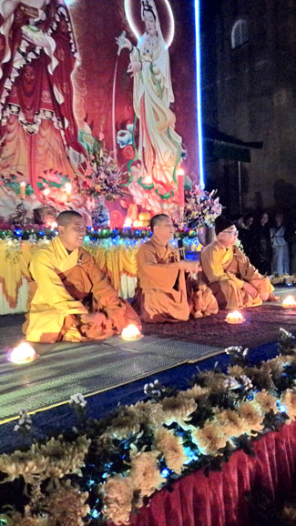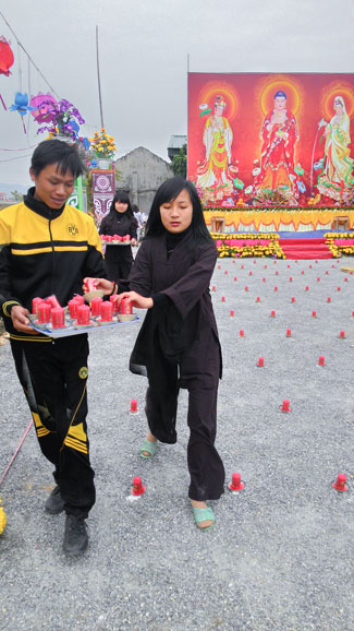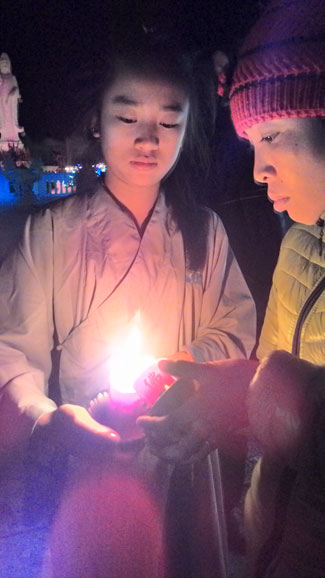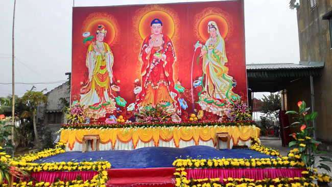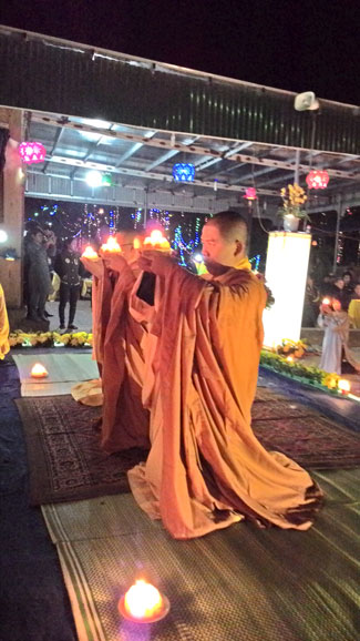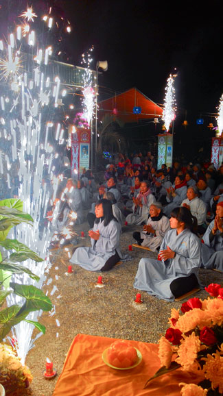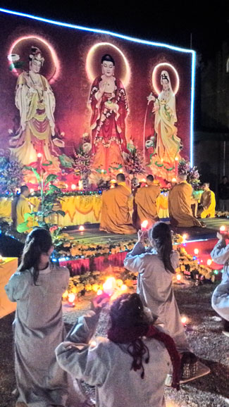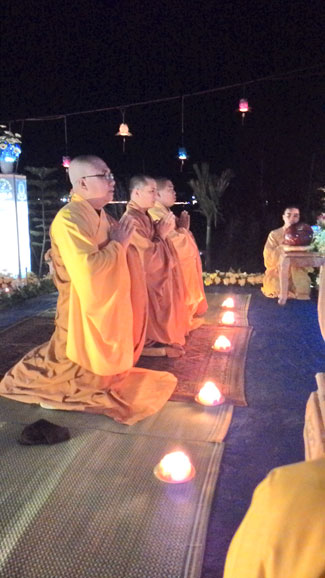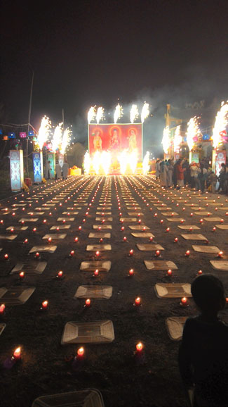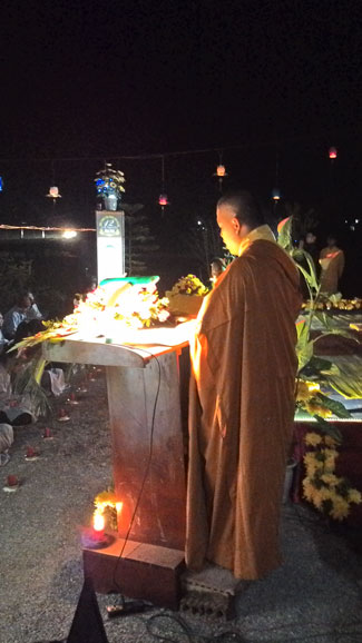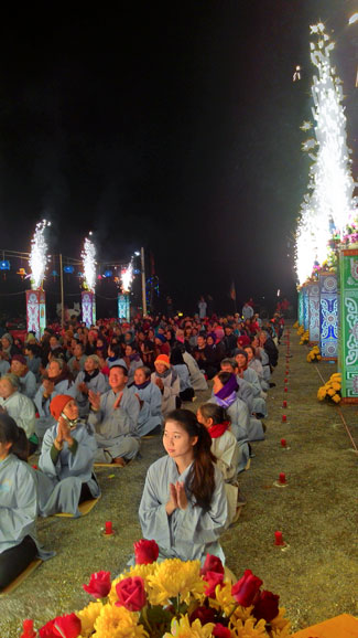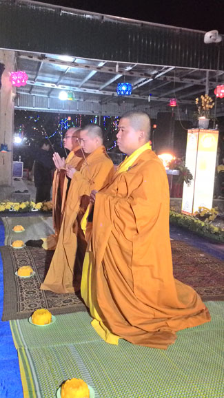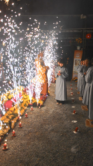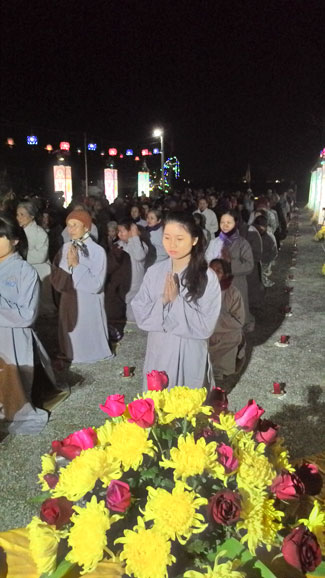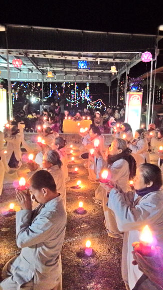 Đáp lời mời của Đại đức trụ trì Thích Tâm Hưng, Đại đức Thích Nguyên Thường trụ trì chùa Kênh- Hưng Phúc tự thôn 6, xã Quảng Hùng, huyện Quảng Xương, tỉnh Thanh Hóa và Đại đức Thích Tâm Kính trụ trì chùa Tây Khánh, thôn Cao Mại, xã Quang Hưng, huyện Kiến Xương, tỉnh Thái Bình đã quang lâm đạo tràng chứng minh đêm hội hoa đăng kỷ niệm ngày vía đức Từ phụ A Di Đà. Mở đầu cho chương trình, Đại đức Thích Tâm Hưng đã tuyên đọc diễn văn khai mạc buổi lễ. Tiếp theo phần quan trọng nhất của buổi lễ là truyền đăng, những ngọn nến được chư Tôn đức thắp sáng lên từ Phật đài và truyền sang cho hàng Phật tử. Những ngọn nến của từ bi và trí tuệ được truyền đi trên tay của những người con Phật chân chính để mang đến một thông điệp rằng: cho dù trong thế gian này vẫn còn sự hiện hữu của nước mắt đau thương, của vô minh đen tối nhưng có ánh sáng tuệ tri tuệ giác của đức Phật thì cuộc sống sẽ bớt đi bóng tối và thay vào đó là ánh quang minh của tình thương và sự hiểu biết. Điều tất yếu chúng ta sẽ có được lạc phúc trong hiện tại cũng như tương lai.