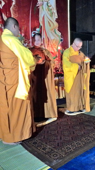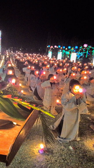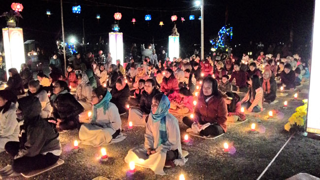 Sau khi kết thúc pháp thoại, đại chúng cùng bước vào thời khóa kinh hành niệm Phật.