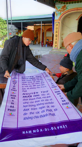 Trong không khí trang nghiêm thanh tịnh, đại chúng đã nghe lại 48 đại nguyện cao cả của đức Phật A Di Đà và cùng phát nguyện niệm Phật để có được an lạc và hạnh phúc, tương lai sẽ được sinh về đất nước của Ngài.