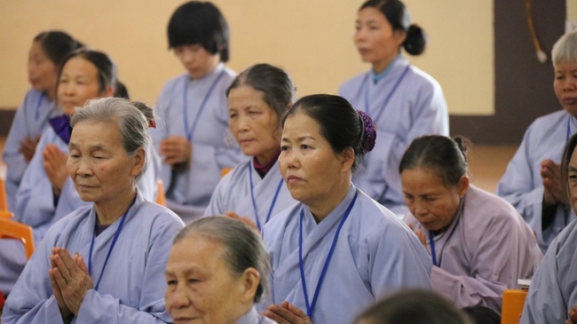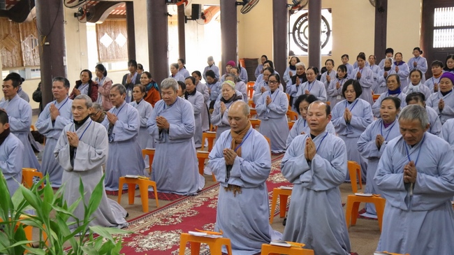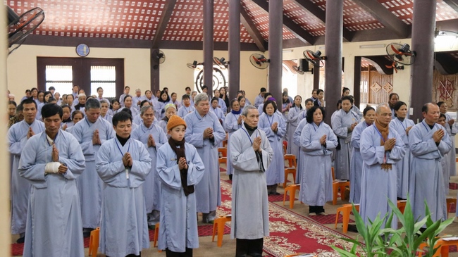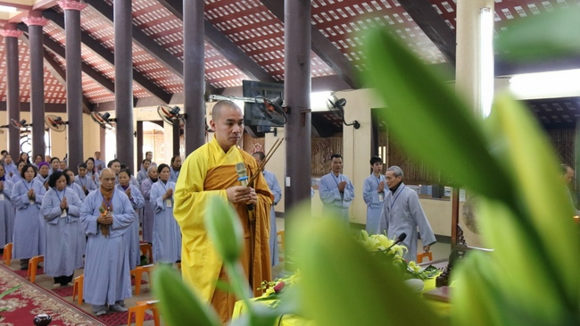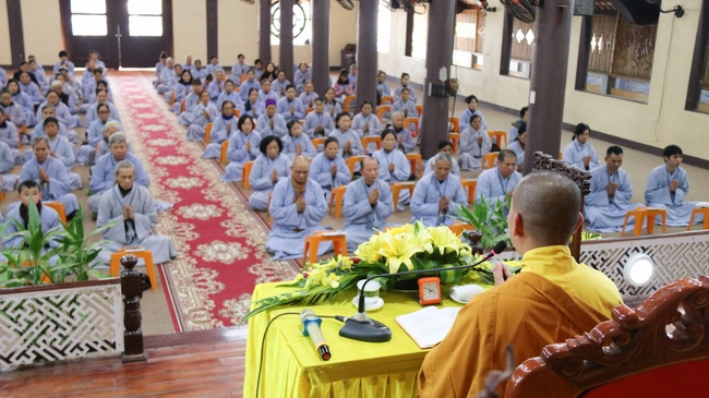 Đúng 14h00, hàng Phật tử đã đồng cung thỉnh Đại đức Thích Tâm Hòa – trụ trì chùa Hòa Phúc quang lâm giảng đường niêm hương bạch Phật và truyền thụ “Bát Quan Trai Giới” cho quý Phật tử. Trong không khí trang nghiêm, các giới tử đã phát nguyện trước Tam Bảo, nguyện tinh tấn tu tập, giữ gìn giới luật trọn vẹn để tăng trưởng phước báu cho mình và nguyện cho tha nhân khắp cõi Sa Bà sớm biết tới niềm an vui trong Phật pháp.