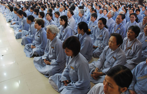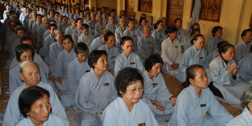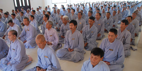 Sáng ngày 07/12, Ban tổ chức tiến hành sắp xếp nơi ăn chỗ nghỉ cho hơn 2.000 Phật tử từ các tỉnh thành trong và ngoài nước về tham dự khóa tu lần này.