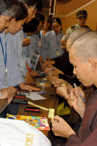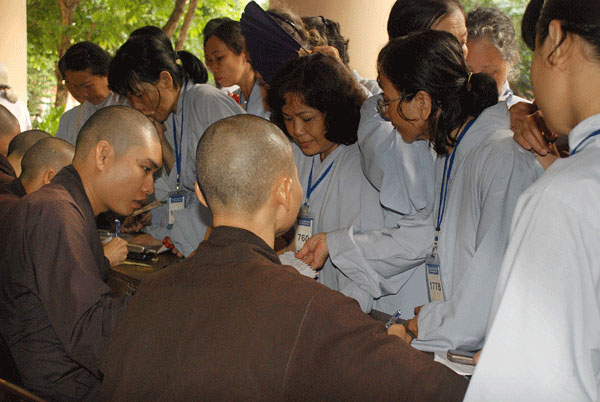 Sáng nay 01/05, ngày đầu tiên của khóa tu, Ban tổ chức tiến hành sắp xếp nơi ăn chỗ nghỉ cho Phật tử từ các tỉnh thành trong và ngoài nước về tham dự.