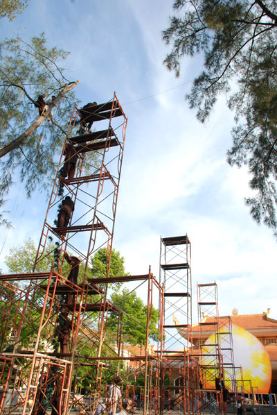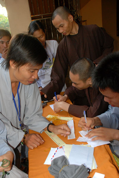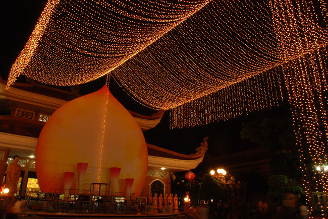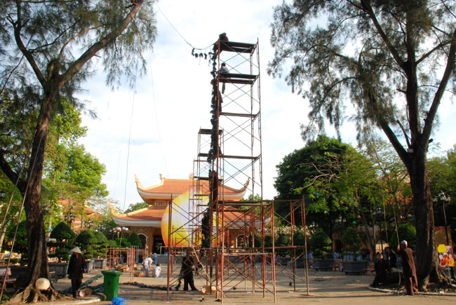 Song song với công tác chuẩn bị cho khóa tu, quý thầy cùng Phật tử bổn tự cũng nỗ lực chuẩn bị cho đêm hội hoa đăng kỷ niệm ngày vía Đức Phật A-di-đà 17-11 sắp tới. Với mong muốn, tạo dựng nên một phần khung cảnh của thế giới Tây phương lung linh và huyền diệu bằng ánh sáng của nến và đèn, nên ngay từ bây giờ BTC đã bắt tay vào công việc lắp ráp hệ thống đèn, cũng như từng bước hoàn thành lễ đài hoa đăng.