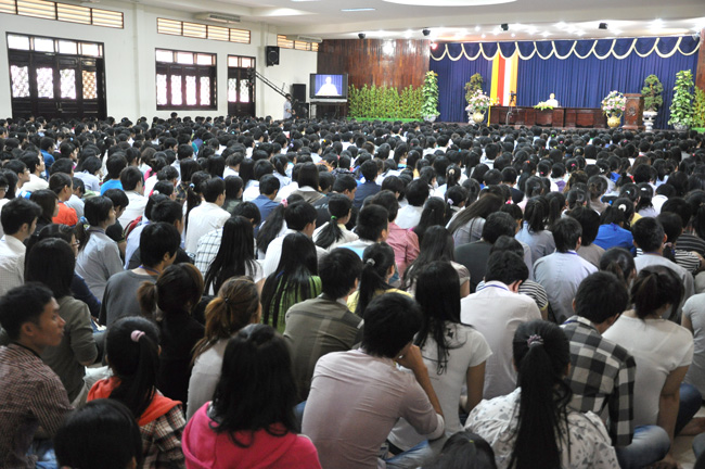 Sáng nay 20/11/2011 (nhằm ngày 25/10 năm Tân Mão) hơn 1500 bạn sinh viên từ các trường đại học tại thành phố Hồ Chí Minh và các tỉnh phụ cận đã về chùa Hoằng Pháp tham dự khóa tu Sinh Viên Hướng Về Phật Pháp.