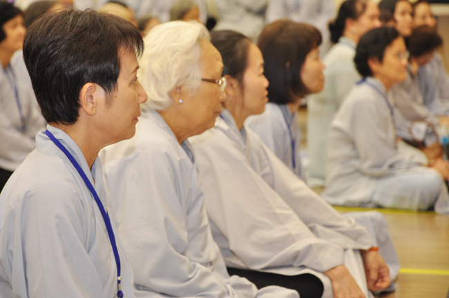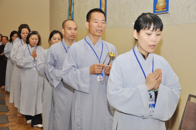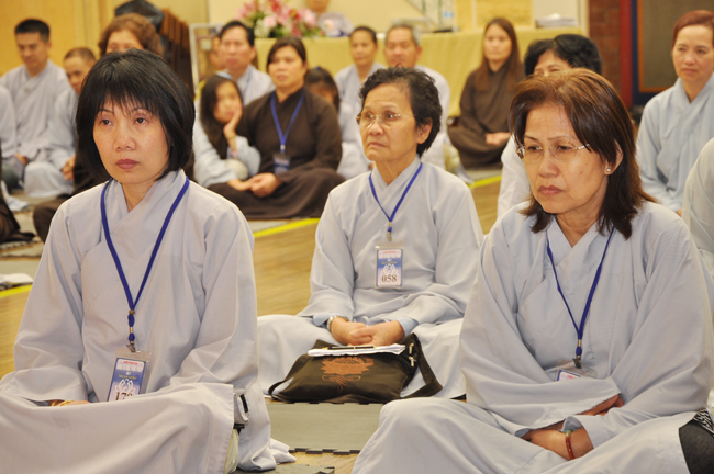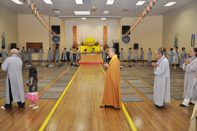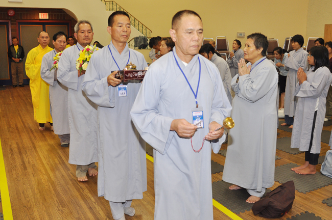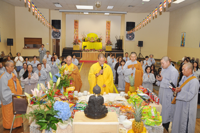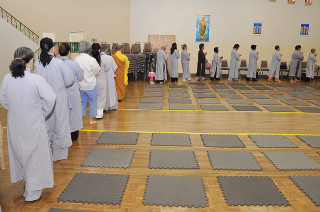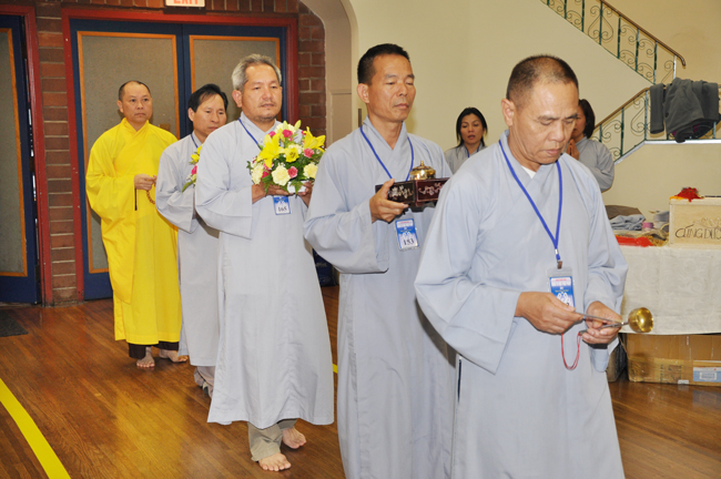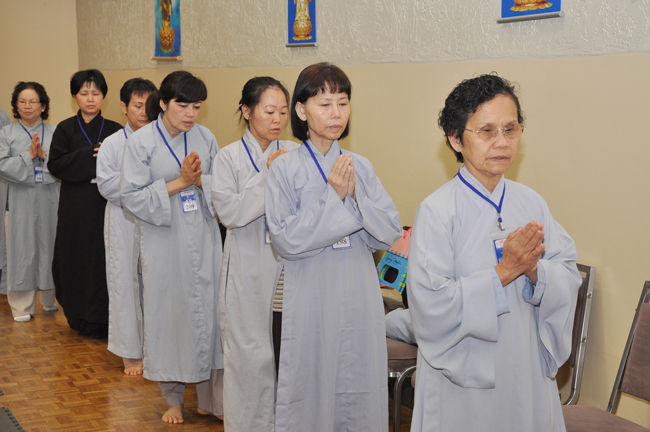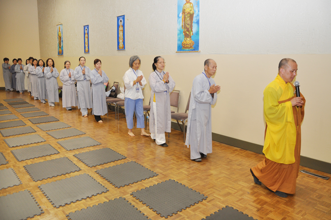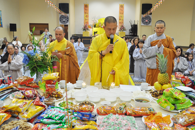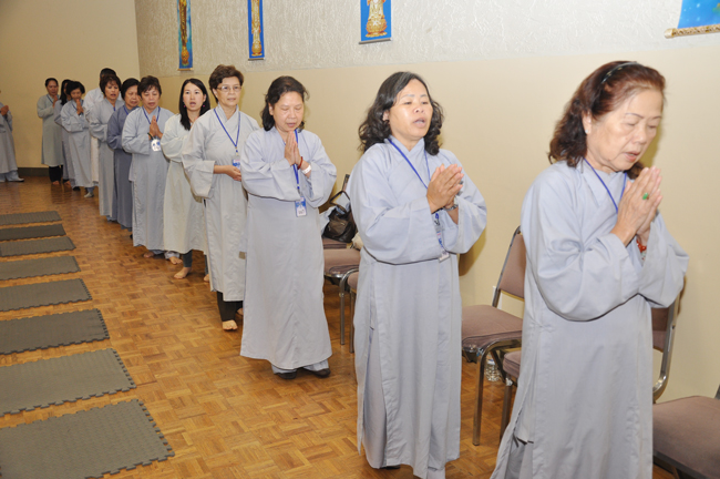 Buổi sáng, đại chúng được ĐĐ. Thích Tâm Minh hướng dẫn công phu kinh hành niệm Phật và chia sẻ những kinh nghiệm trong quá trình tu tập của mình. Vào đầu giờ chiều là thời khoá tụng kinh sám hối sáu căn và nghi thức cúng mông sơn thí thực do ĐĐ. Thích Thông Lý chủ sám, cầu nguyện cho kẻ mất người còn đều được lợi lạc.