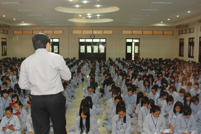 Chiều 8/7, quý thầy trong Ban tổ chức đã có buổi sinh hoạt nội quy khóa tu, đồng thời cũng có đôi lời dặn dò, chia sẻ thân tình đến các bạn trẻ