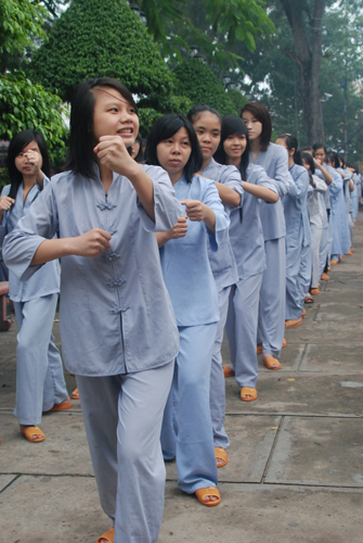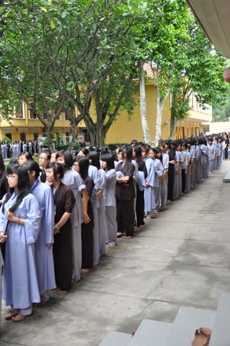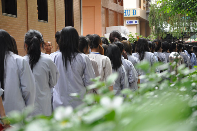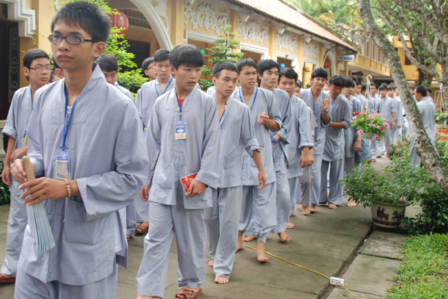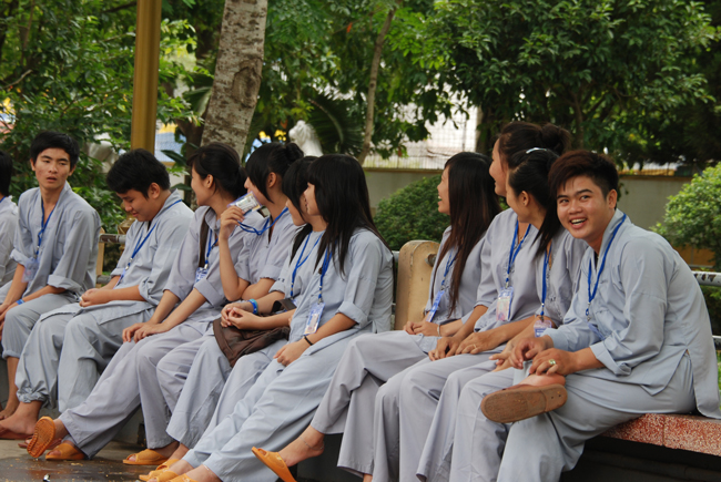 Đến sáng ngày 7/7, trong khuôn viên chùa đã tràn ngập bóng dáng của các bạn trẻ trong màu áo lam thuần khiết. Những gương mặt háo hức, những ánh mắt hân hoan, tiếng chào A-di-đà Phật bỡ ngỡ... tất cả đều báo hiệu cho một khóa tu an lạc sắp đến.