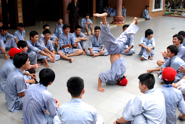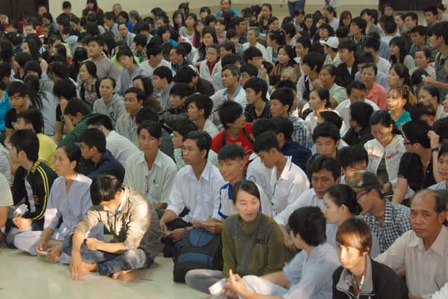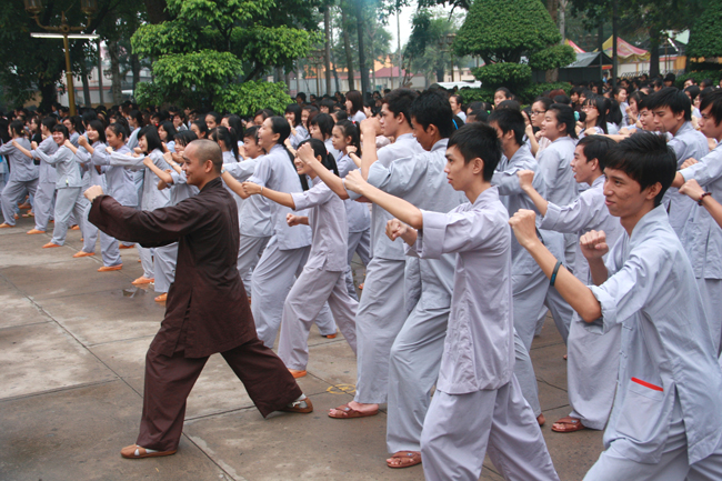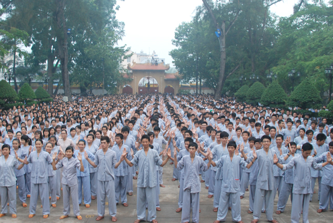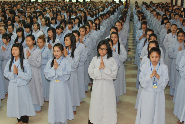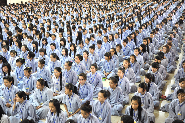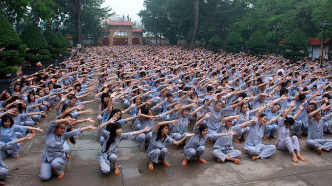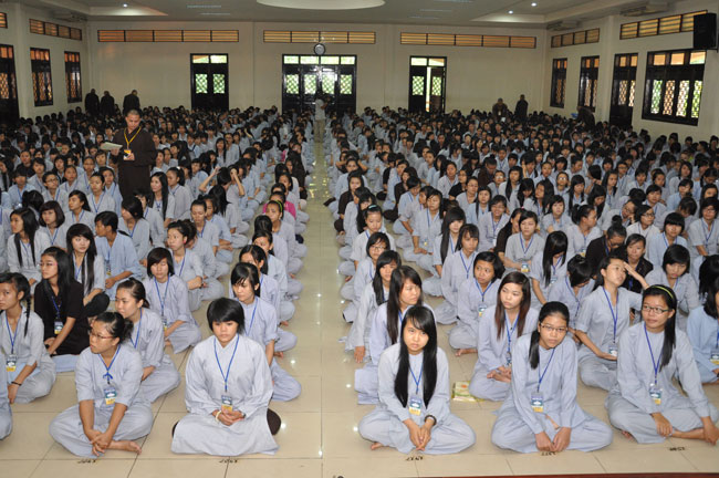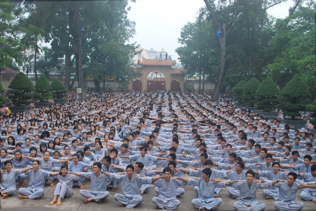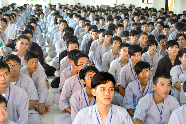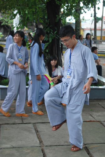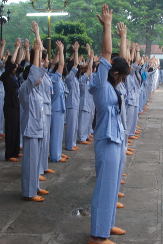 Sáng sớm 8/7, dưới sự hướng dẫn của quý thầy, bài thể dục khởi động cho khóa tu đã diễn ra trong không khí hân hoan của hơn 3300 khóa viên. Sau bữa điểm tâm sáng, các em được quý thầy sắp xếp chỗ ăn, ngủ nghỉ, nghe pháp, tu tập trong suốt thời gian khóa tu diễn ra.