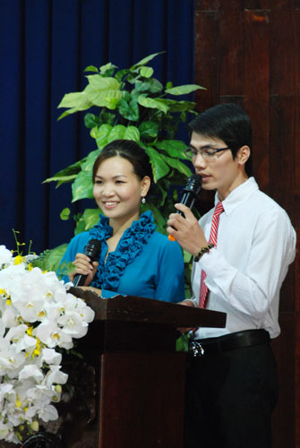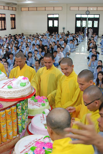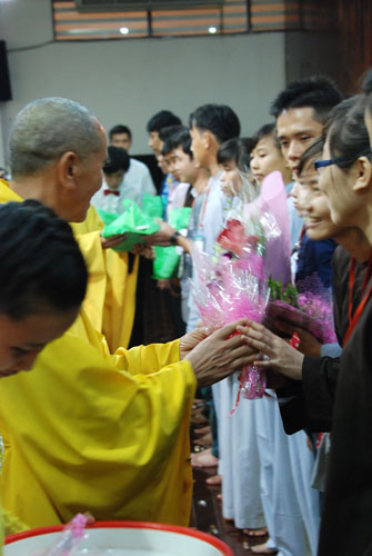 Kết thúc buổi lễ, trên gương mặt mọi người ai cũng đều hoan hỷ. Quý Thầy trao tặng mỗi bạn trong nhóm Hộ Pháp 1 DVD “Diệu Âm Hoằng Pháp 4” và truyện tranh “Nhân Quả Minh Hoạ”.