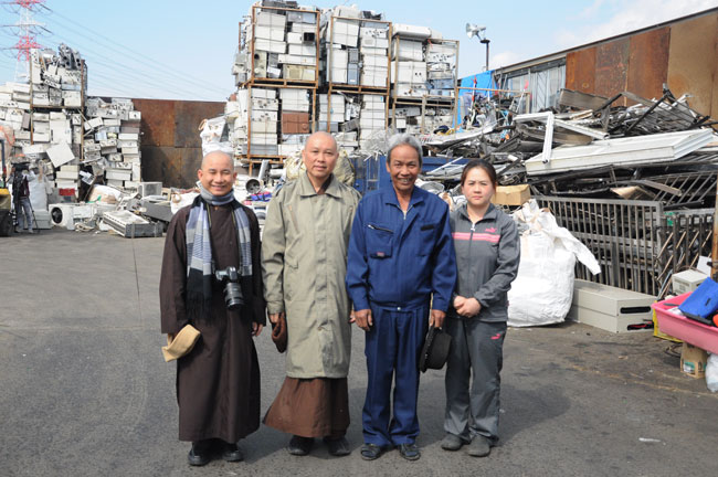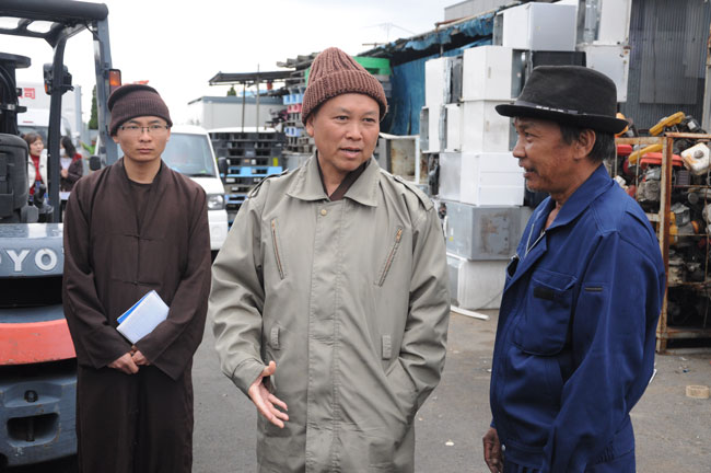 Trong việc buôn bán, ông còn tạo điều kiện giúp đỡ nhiều người đang gặp khó khăn có thêm thu nhập. Ông chia sẻ: “Ngày xưa mình gặp khó khăn không ai giúp đỡ, cái cảnh đó thật tội nghiệp. Nên giờ mình có điều kiện cũng nên giúp cho họ có miếng cơm manh áo. Phật dạy ở hiền gặp lành, hơn nữa cũng là để tích đức cho con cháu mai này.” Sau cuộc trò chuyện thân mật, đoàn được ông dẫn đi tham quan cơ sở phế liệu và chụp hình lưu niệm.