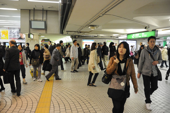 Ga Shinjuku là một đầu mối giao thông bận rộn, nằm ở cửa ngõ phía tây của thủ đô Tokyo, mỗi ngày phục vụ khoảng 3 triệu lượt hành khách. Nơi đây được xem là ga đường sắt tấp nập nhất thế giới với thiết bị bán vé tự động tiên tiến. Nhìn hệ thống biển chỉ dẫn tại ga này với vô vàn màu sắc và mũi tên chỉ dẫn khiến chúng tôi như lạc lõng giữa biển người đang hối hả ngược xuôi cho kịp chuyến tàu. Có lẽ, họ đang chạy đua với thời gian để tìm cho mình một bến đỗ bình yên trong cuộc sống hiện đại này.