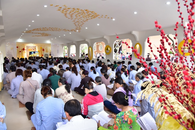 Sau thời pháp là nghi thức niêm hương bạch Phật và khóa lễ tụng kinh cầu an. Toàn thể đại chúng đồng nhất tâm tụng niệm, cầu mong một năm mới yên bình, người người biết quay về nương tựa Tam Bảo, cùng làm theo lời Phật dạy để có được sự an lành hạnh phúc, đất nước thái bình, chúng sinh an lạc.
