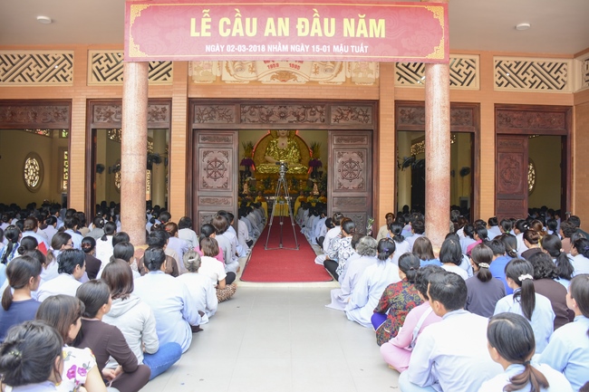 Sáng ngày 02/03/2018 (nhằm ngày 15 tháng Giêng năm Mậu Tuất), hàng ngàn thiện tín Phật tử đã về chùa Hoằng Pháp tham dự lễ Cầu an đầu năm.