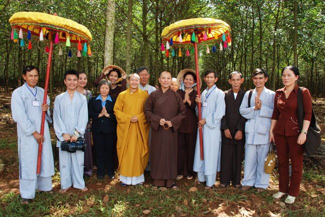 Từ chùa Hoằng Pháp đến chùa Phước Duyên hơn 150km. Đoạn đường từ quốc lộ vào chùa hơn 10km, hai bên đường là rừng cao su bạt ngàn, nhà ở thưa thớt, tưởng chừng như hiếm có người sinh sống. Thế mà lúc đến nơi Thượng tọa đã hết sức ngạc nhiên khi thấy vùng đất rộng người thưa này lại có một ngôi chùa, mỗi tháng tổ chức tu niệm Phật một ngày với số lượng hơn 500 hành giả. Không khí sinh hoạt tu học rất trang nghiêm thanh tịnh, quy củ nề nếp. Do số lượng Phật tử về tu tập ngày một đông, giảng đường không đủ đáp ứng, Đại đức trụ trì đã quyết định xây dựng giảng đường mới rộng lớn hơn.