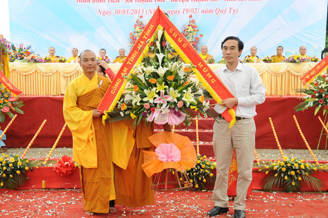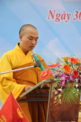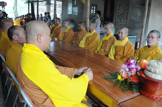 Ngay trong buổi lễ, Thượng tọa Thích Chân Tính, thay mặt chư Tăng, đã ban đôi lời đạo từ. Thượng tọa chia sẻ, để có được một ngôi chùa thật sự ý nghĩa như lời Phật dạy, cần hội đủ rất nhiều duyên lành. Trong đó phải kể đến sự tài đức của chư Tăng trụ xứ, tín tâm của bà con, cũng như sự phát tâm của đàn việt. Thế nên, tất cả mọi người kể cả chư Tăng cũng như cư sĩ, nên đồng lòng cùng nhau tu tập, cùng nhau xây dựng nên ngôi già lam, mang lại lợi lạc cho xã hội hiện tại, và lợi ích cho mai sau.