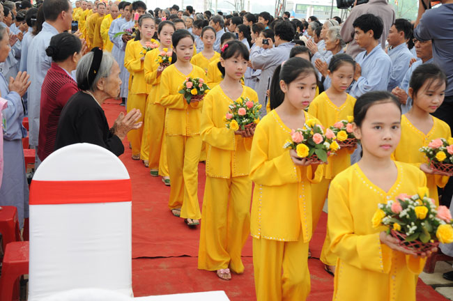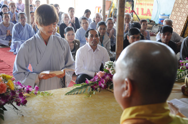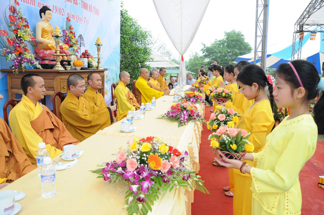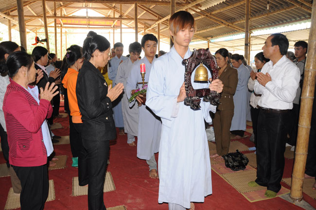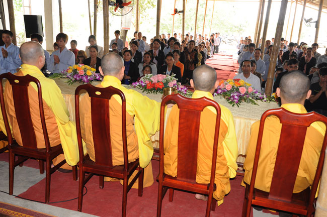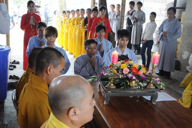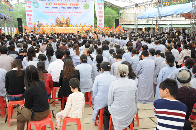 Thêm vào đó, ngay đầu giờ chiều ngày 30, nhằm gieo duyên Phật Pháp cho quý Phật tử tại Hà Tĩnh, cũng như hiểu hơn về Tam quy Ngũ giới, Thượng tọa Thích Chân Tính cùng chư Tăng chùa Hoằng Pháp đã tổ chức lễ quy y Tam bảo cho thiện nam tín nữ ở đây.