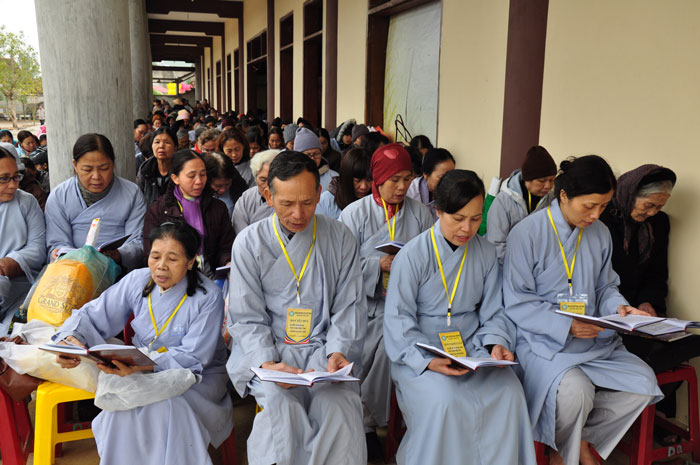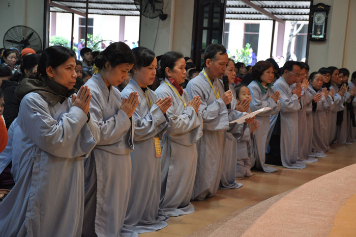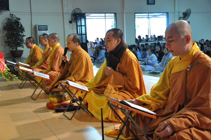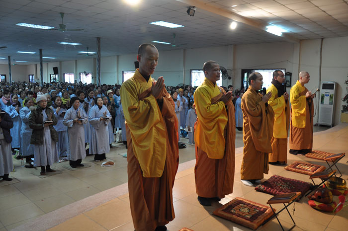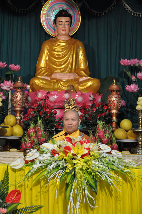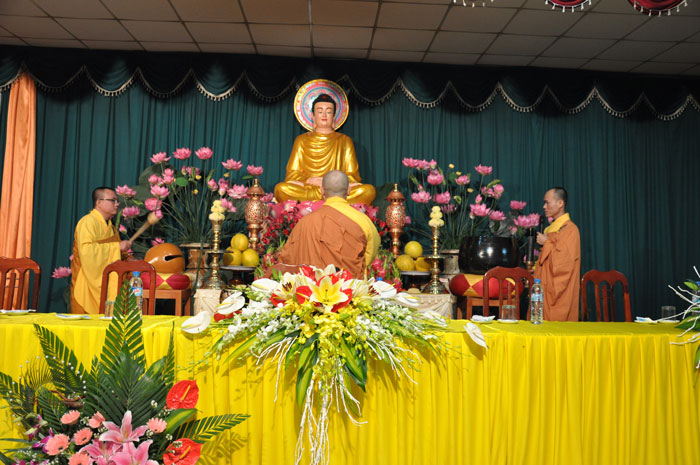 Trong khuôn khổ của đại lễ, vào buổi sáng, Thượng tọa cùng chư Tôn đức Tăng đã quang lâm giảng đường tác pháp truyền trao tam quy ngũ giới cho quý thiện nam tín nữ. Tại buổi lễ, Thượng tọa đã giảng dạy về ý nghĩa của tam quy và ngũ giới, đây là nền tảng căn bản của một người Phật tử nói chung và đây cũng là những điều kiện để hoàn thiện nhân cách của một con người. Bên cạnh đó, Thượng tọa cũng chỉ dạy cho quý Phật tử về những oai nghi cần thiết của người con Phật. Sau buổi lễ, tất cả quý Phật tử đều rất hoan hỷ và y giáo phụng hành để trở thành người con Phật chân chính, người công dân tốt cho xã hội cũng như có ích cho Phật pháp.