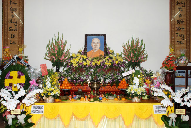 Đất thảm trời sầu Hòa thượng quy Đau lòng Phật tử với Tăng Ni Nhớ thương Đại lão tâm Bồ-tát Kính mến cao Tăng hạnh đại bi. Giáo lý in kinh rèn đệ tử Đạo vàng lập trại cứu cô nhi Đại hiền rũ thoát nơi trần tục Nghĩa nặng ơn sâu đức độ trì.