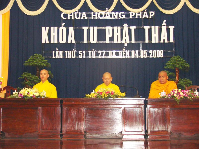 Sau một tuần tu tập đầy an lạc, hôm nay, ngày 4 tháng 5 năm 2008 (nhằm ngày 29/03MT), chùa Hoằng Pháp tổ chức lễ kết khóa “khóa tu Phật thất” lần thứ 51 trong không khí trang nghiêm và thanh tịnh dưới sự chứng minh của chư tôn Thượng tọa, Đại đức Tăng trong ban tổ chức khóa tu.
