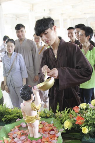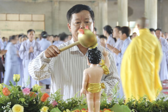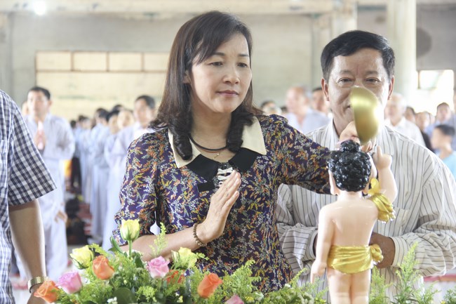 Kết thúc buổi lễ, chư tôn đức, quý vị đại biểu đã dâng hương và cử hành nghi thức tắm Phật trong tinh thần trang nghiêm, thành kính, hòa hợp trong ngày đản sinh của đức Phật.
