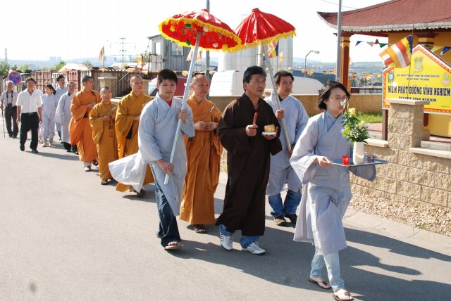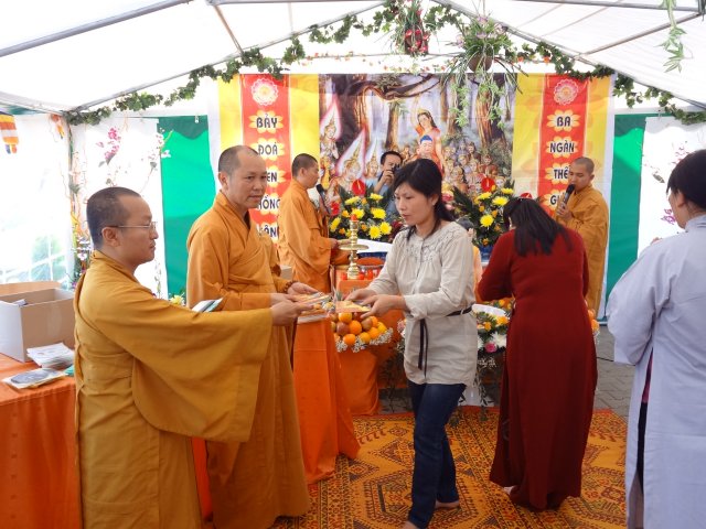 Buổi gặp gỡ đã thu được nhiều thành quả tốt đẹp, hai bên cùng hợp tác để công việc được triển khai hầu mang lại lợi ích chung cho cộng đồng. Sau đó quý Thầy đi tham quan một số nơi tại trung tâm thành phố như Nhà Hát Lớn, Cung Điện của Vua…. Chiều cùng ngày, chư Tôn đức đã trở lại Tp. Brno – Cộng Hòa Séc để tham dự lễ Phật Đản tại TTTM OLOMUKA 61. Trung Tâm này có mặt vào năm 1994, chính thức hoạt động vào năm 1996 do Phật tử Hoa Tâm -Vũ Thị Thư và một số thành viên sáng lập (trước đây còn gọi là chợ Cô Thư). Hiện nay Giám đốc điều hành Trung Tâm là ông Trần Chuyên, Chủ tịch Hội Người Việt Nam tại Brno là ông Trương Công Xứ, chủ tịch Chi Hội Phật tử là ông Nguyễn Hùng Phương.